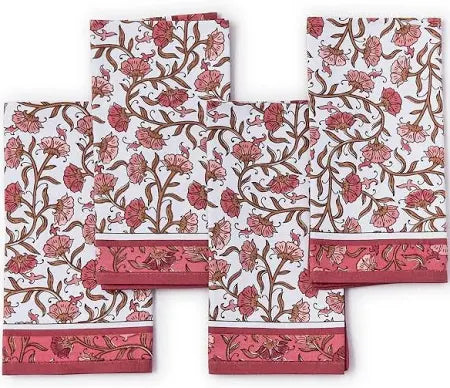 Blush floral print in gorgeous, color-rich hues reminiscent of a traditional block print, these are sure to a stunning addition to your table.