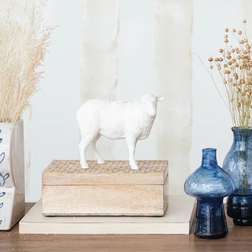 This display box has a unique design and an eye-catching vintage charm. The box is made of high-quality mango wood with an antique finish on the frame and the hinges. Place on a nightstand, dresser, vanity, or shelf to hold small items or keepsakes.