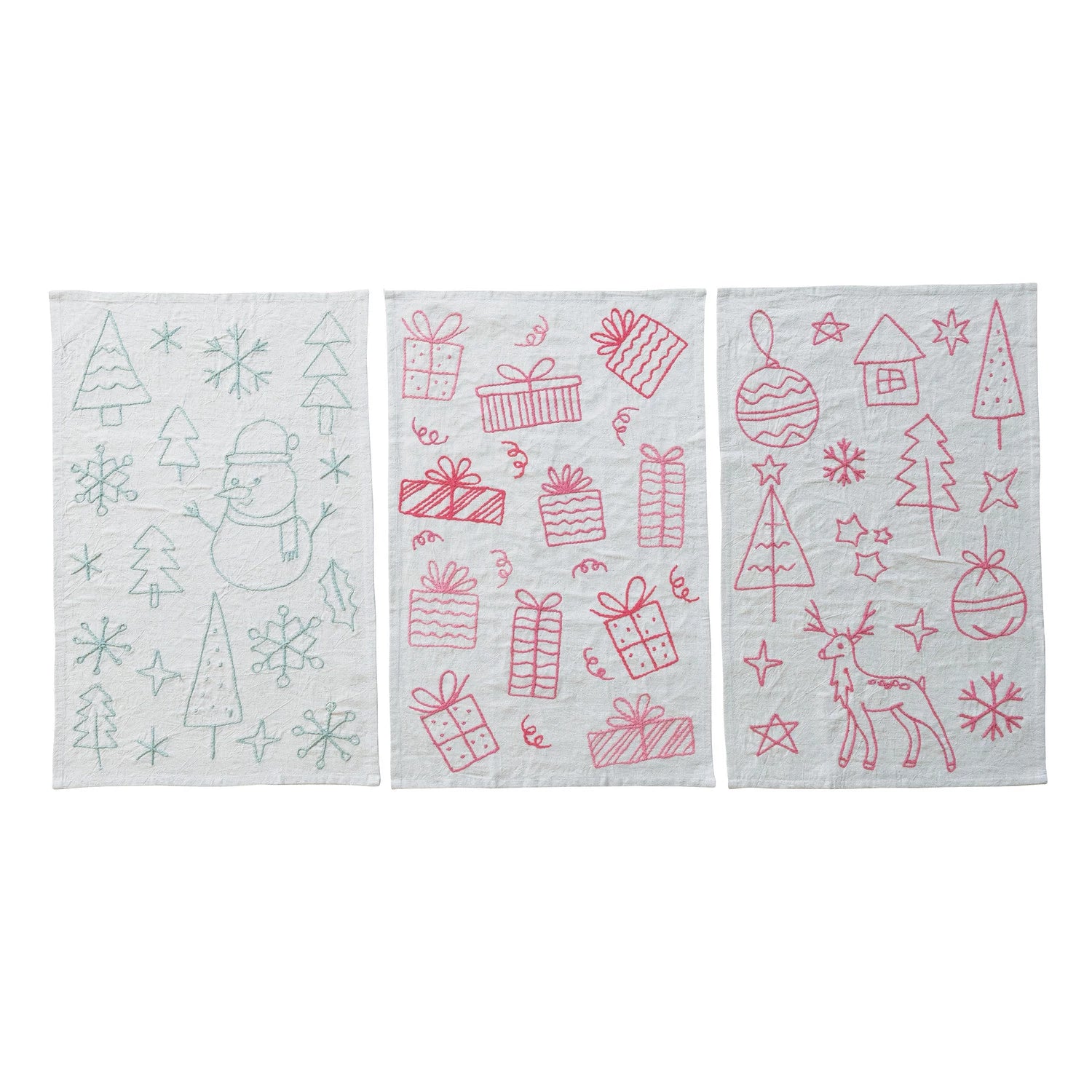 Embroidered Holiday Illustrations Tea Towel Set