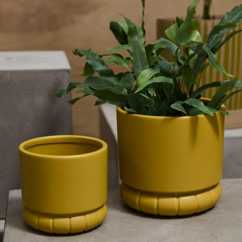 Cuteness loves company, & the ceramic cylinder Fara Pot is just missing drop-in plant companions. Featuring a super smooth matte finish & a ring base with carved vertical lines, these watertight pots make fun gifts & add a pop of color & a lot of charm to whatever plants you pair them with.