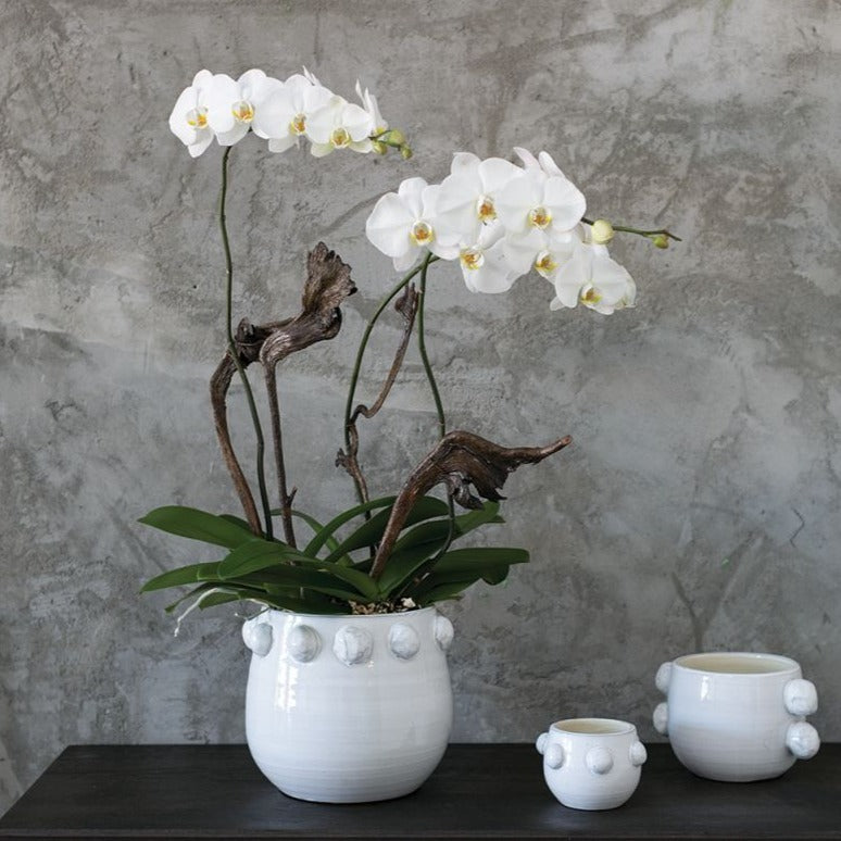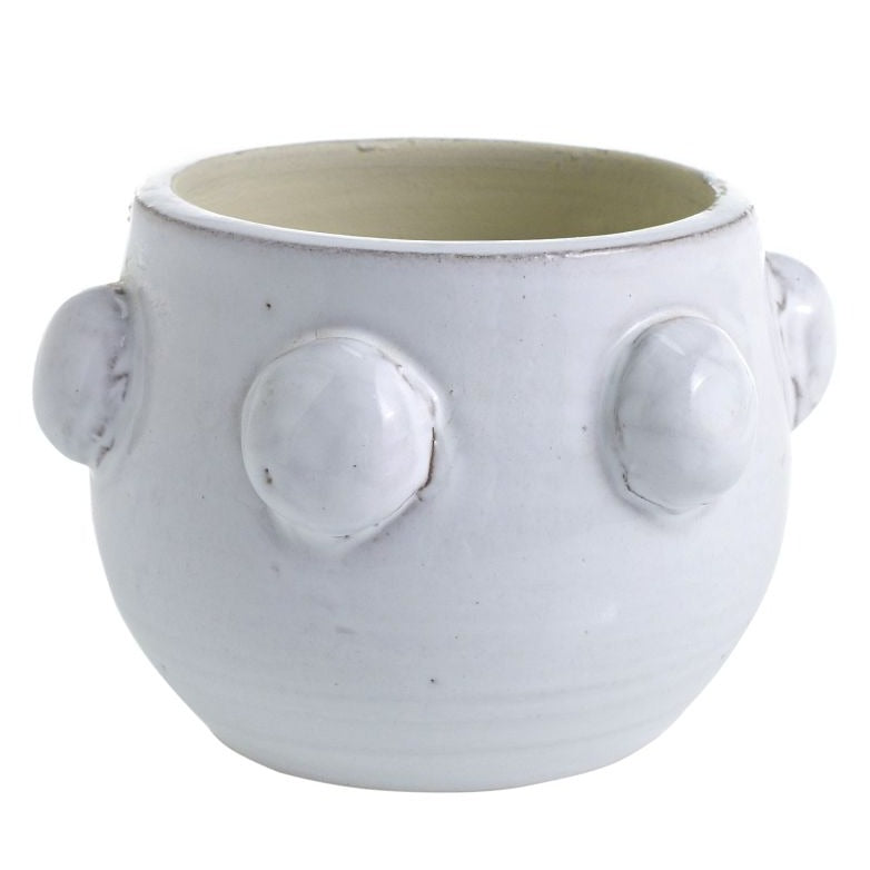 Bold baubles instantly elevate this white ceramic vessel - it's the perfect pick a modern home. Pop in a house plant or your favorite faux stems!