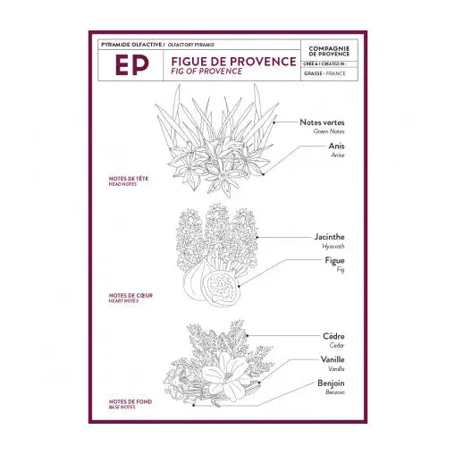 A delicious fragrance with notes of a sweet fruit recalling the fig of Provence. Fragrance created in Grasse.
