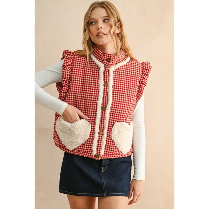 Gingham Heart Sherpa Pocket Vest