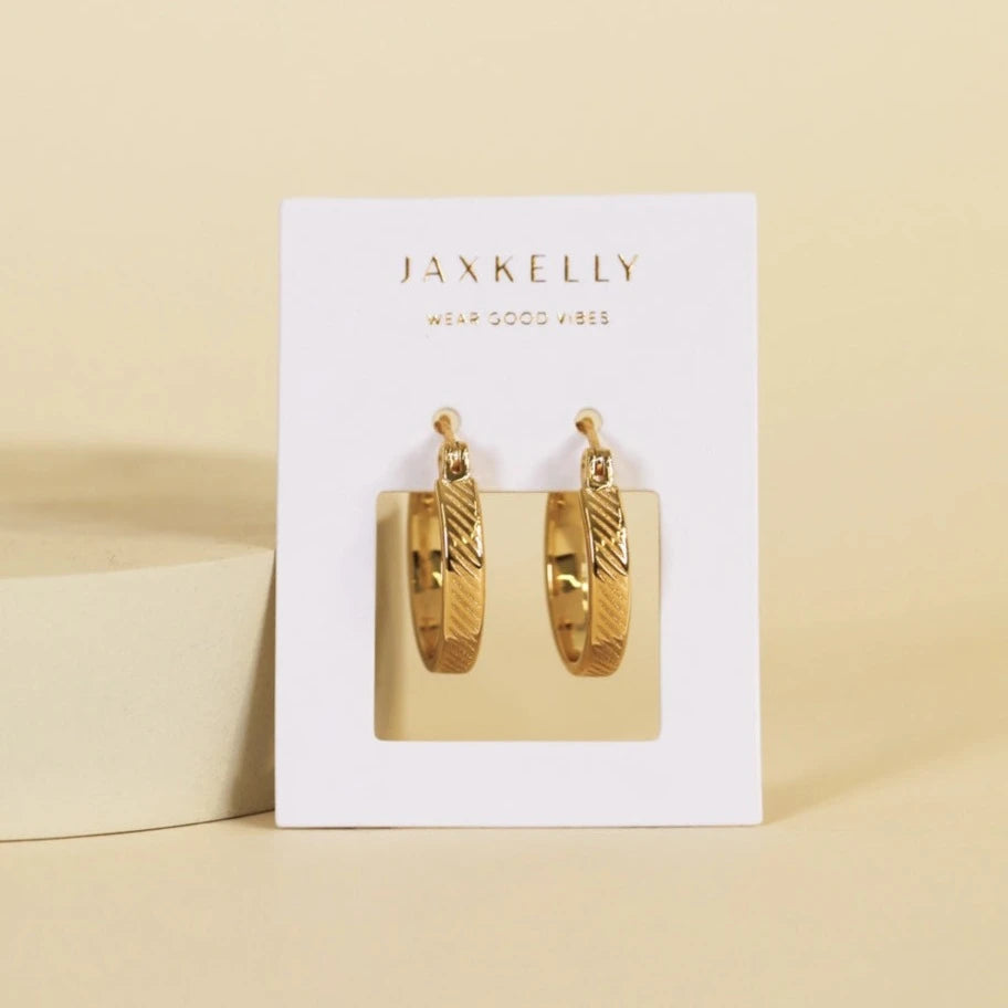 Elevate your everyday look with these timeless hoops. The subtle yet distinctive texture created by delicate diagonal lines is sure to make them your go-to accessory.