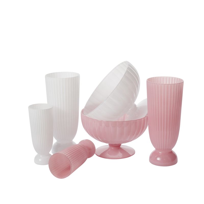 From celebratory occasions to everyday use, the versatile Kyandi Vase with its vintage hue & silhouette is stunning with fresh or dried florals. Handmade from white opaque glass with ribbed detailing, this vase makes a classy accent & centerpiece.