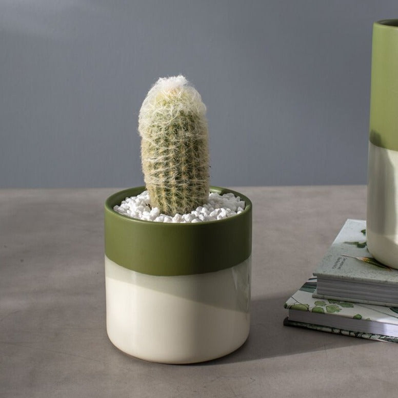 The color story of the ceramic Lauris Vase is as beautiful to behold as the blooms that will fill it. The smooth matte finish of green & white color blocking creates a rich, earthy look.