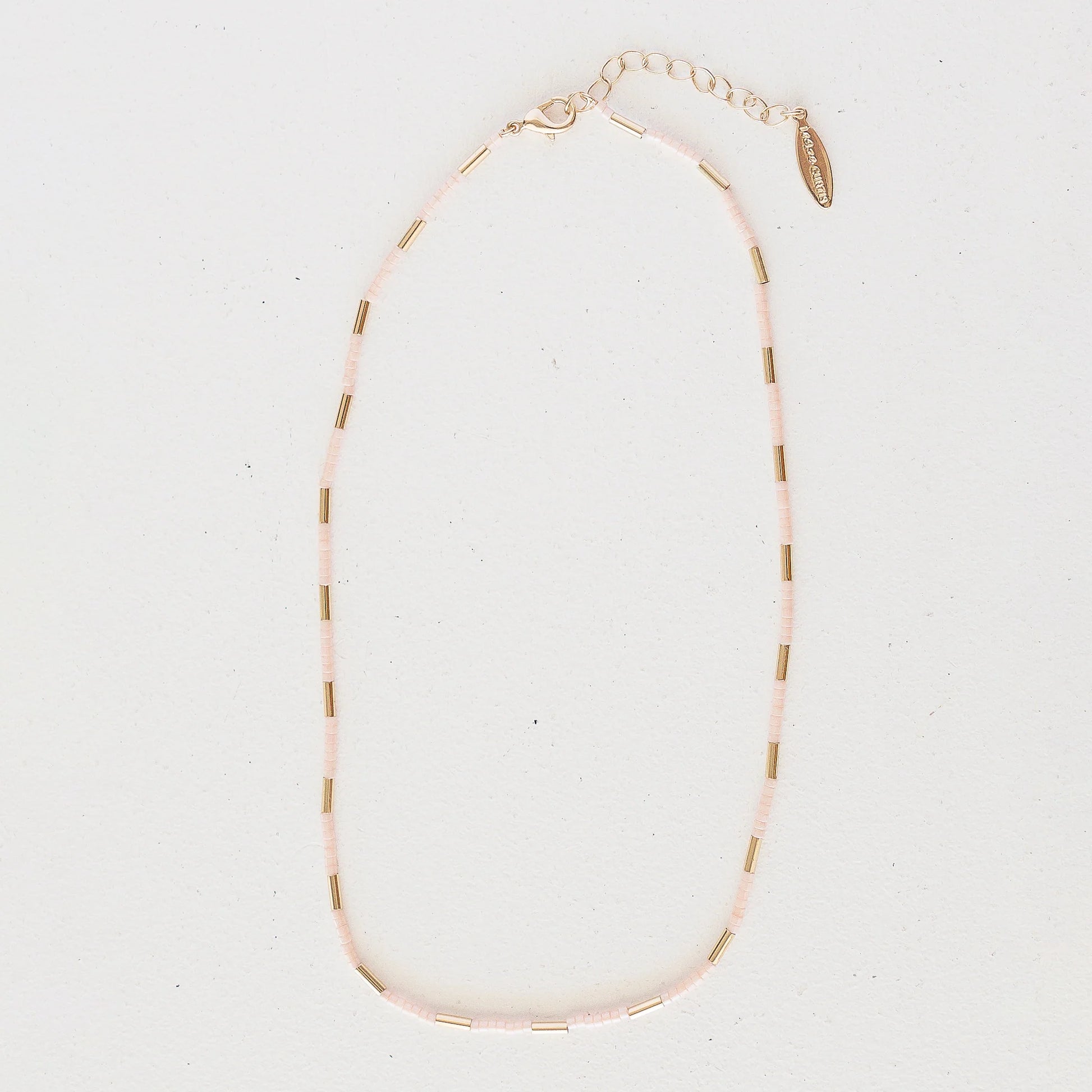 beaded pink layering necklace 15" with 2" extender. Available in gold and silver