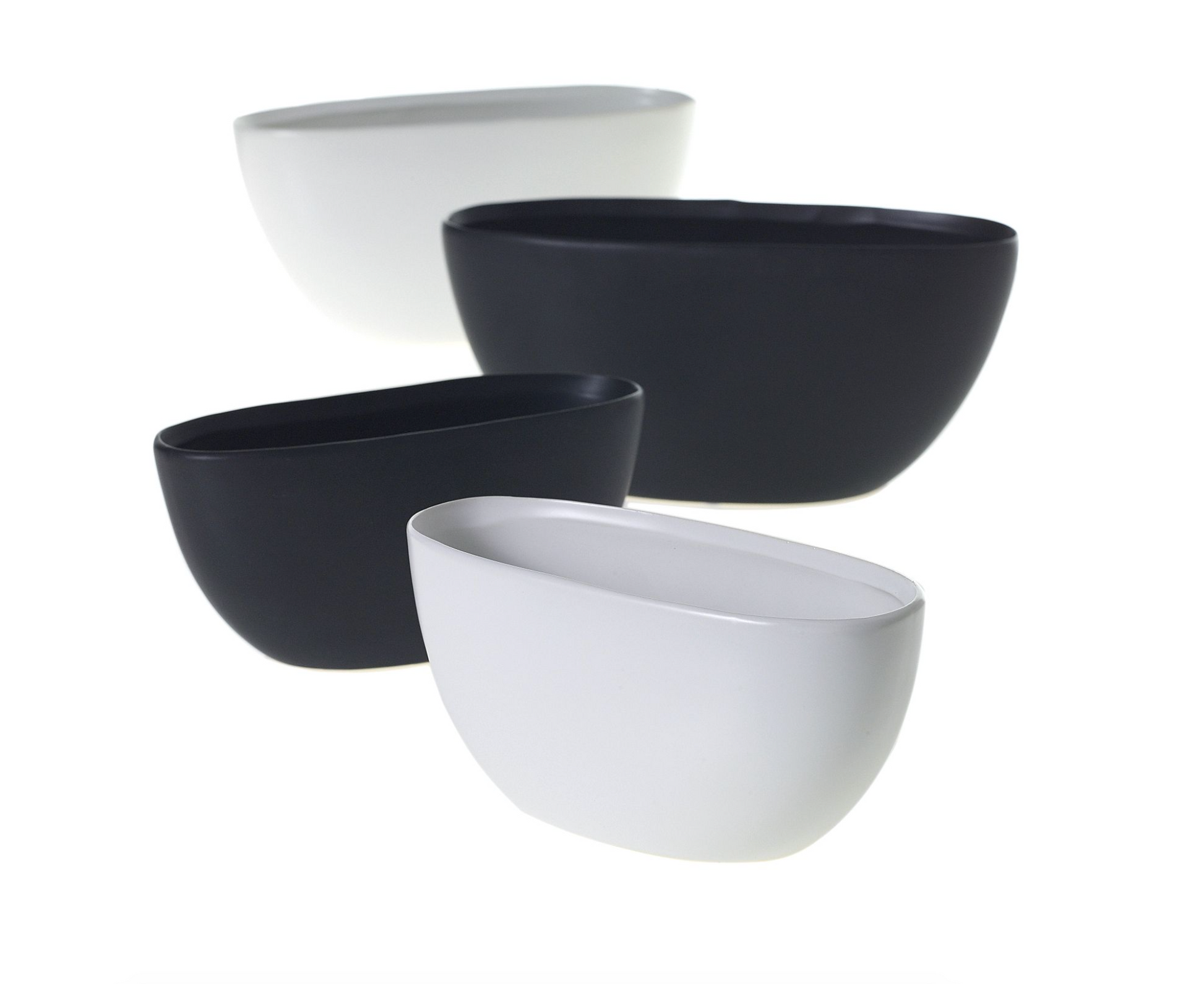 A modern ceramic oval bowl. A work of art alone or filled with flowers.