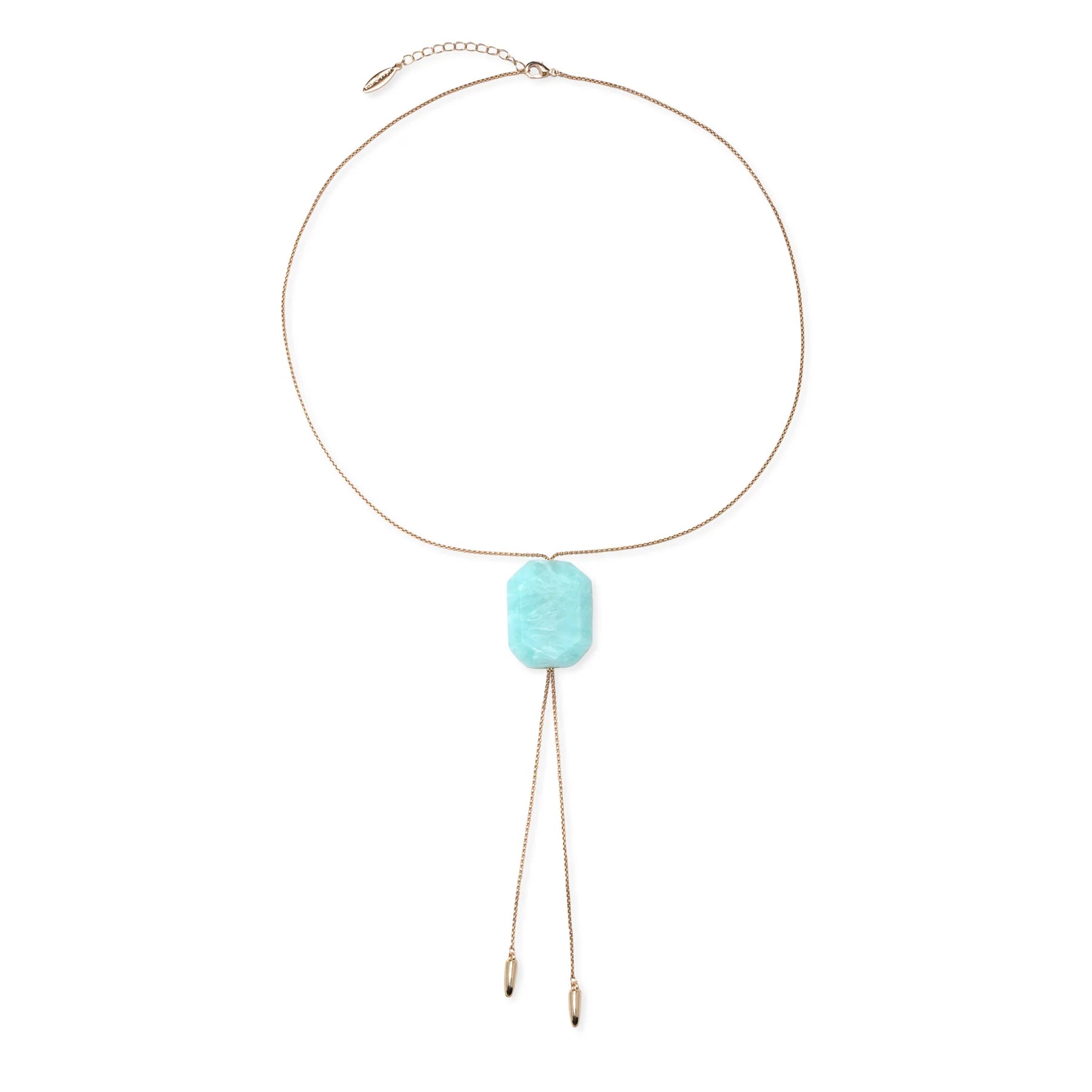 Lariat necklace with large amazonite stone, 24" with 2" extender