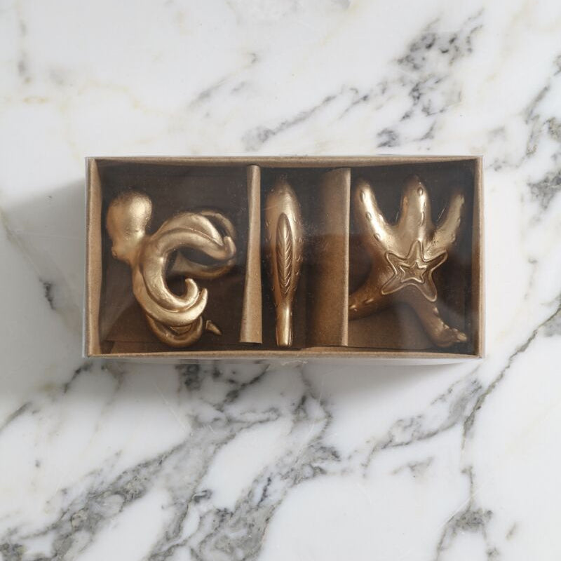 Bring the marvels of the sea to plants with the set of 3 Sea Creature Pot Huggers. Handmade of resin & finished with a semi-matte gold finish, this charming set includes an octopus, starfish, & fish that can hang on the rim of pots.