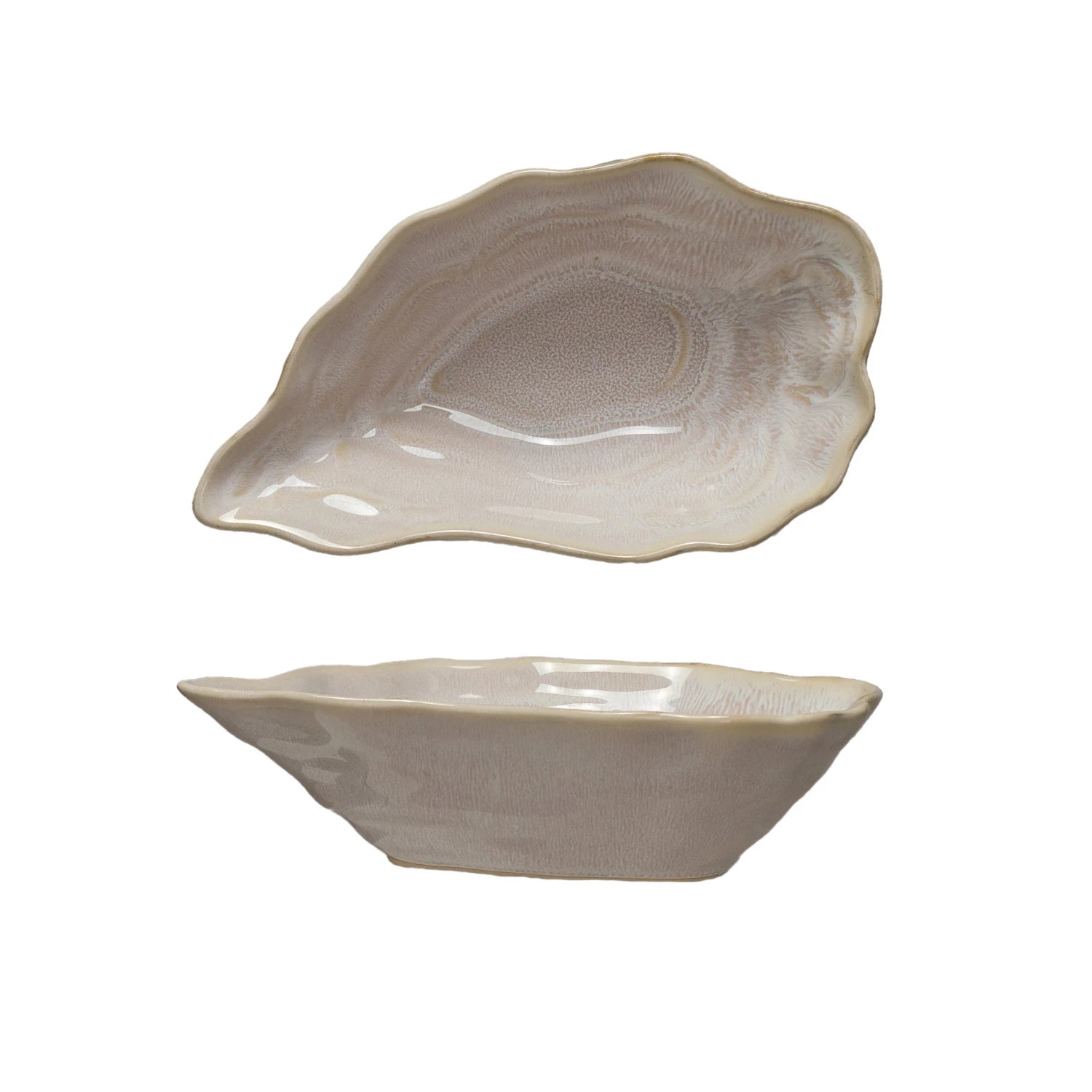 7-3/4"L x 4-1/4"W x 2"H Stoneware Oyster Shell Shaped Bowl, Reactive Glaze, Cream Color (Each One Will Vary)