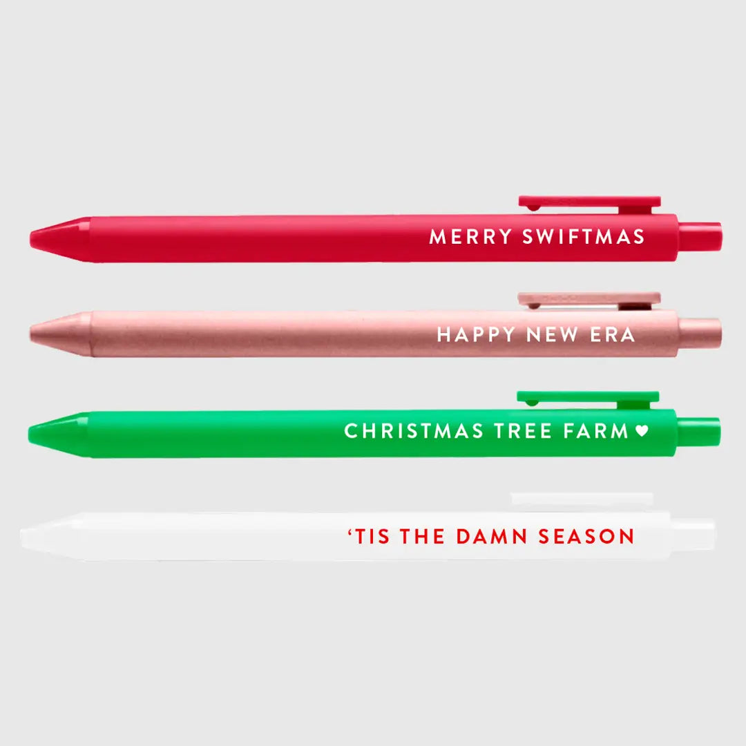 Pens Say: Merry Swiftmas, Happy New Era, Christmas Tree Farm, 'Tis The Damn Season