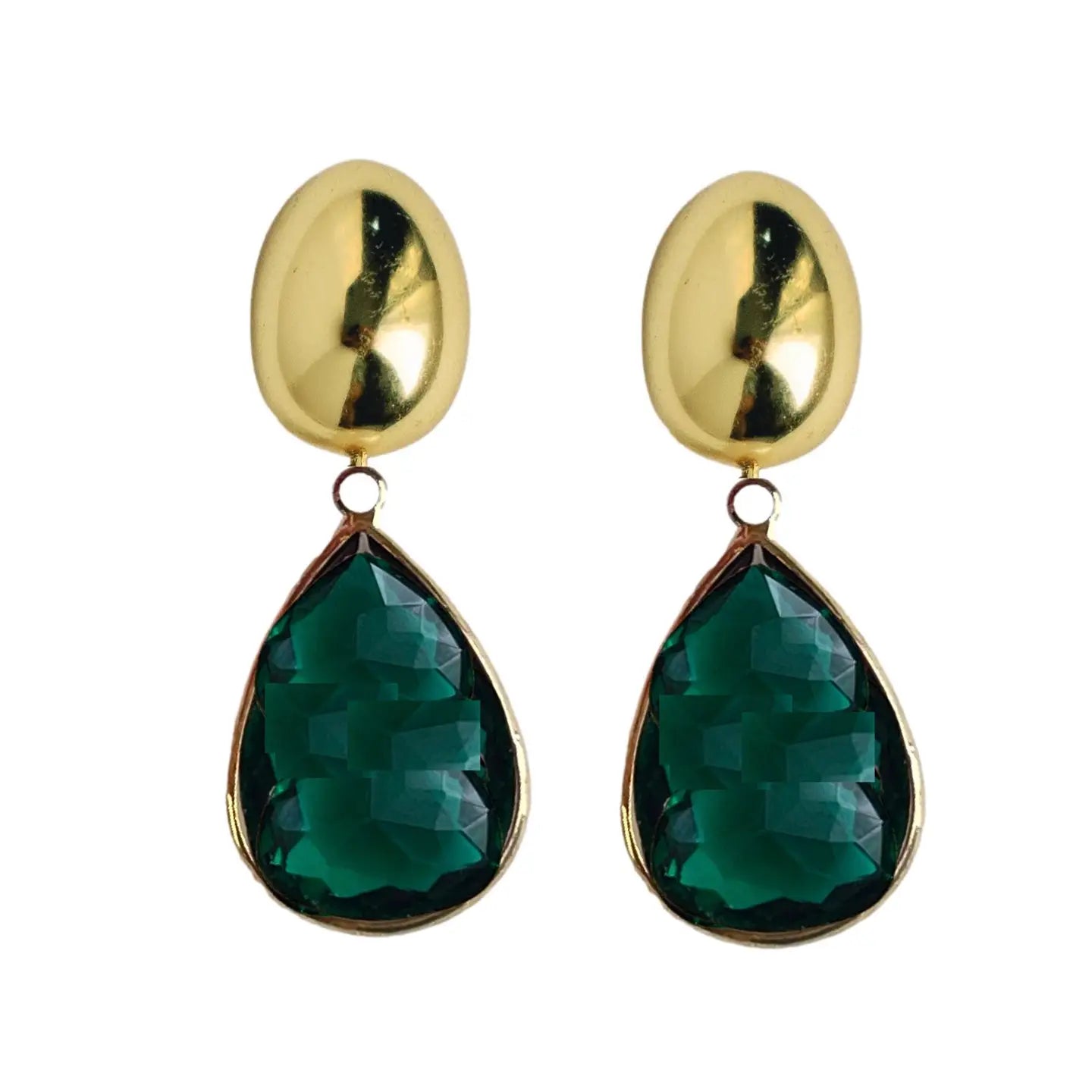 Introducing our exquisite vintage-inspired vintage chunky gold and green earrings! A timeless statement piece featuring a synthetic brown quartz gemstone delicately suspended from a luxe gold chunky top! These classic earrings are lightweight and perfectly sized at 2.5 inches!