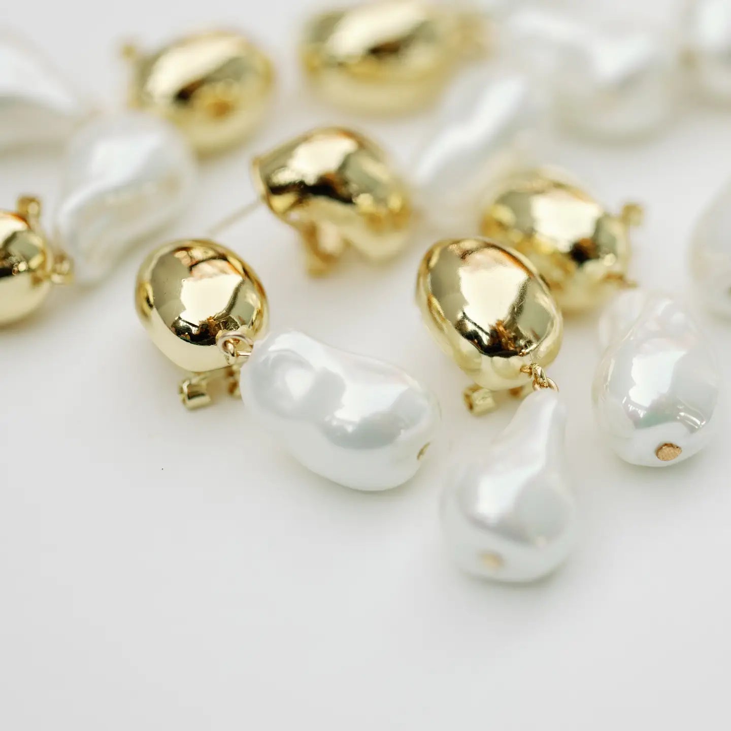 Introducing our exquisite vintage-inspired natural pearl earrings, a timeless statement piece featuring a lustrous faux natural pearl delicately suspended from a luxe gold chunky top! These classic earrings are lightweight and perfectly sized at 2.5 inches!