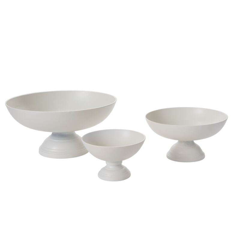 Equal parts functional and versatile, the Oscar Bowl is a cast aluminum footed bowl that can support a stunning floral design for a variety of events. This timeless style can help to create a show stopping bar arrangement, a low profile centerpiece, or adorn a welcoming entry table. A matte, warm white finish allows florals to shine, while keeping them hydrated with plenty of water. Utilize all three sizes for consistent floral presentations around an entire venue.