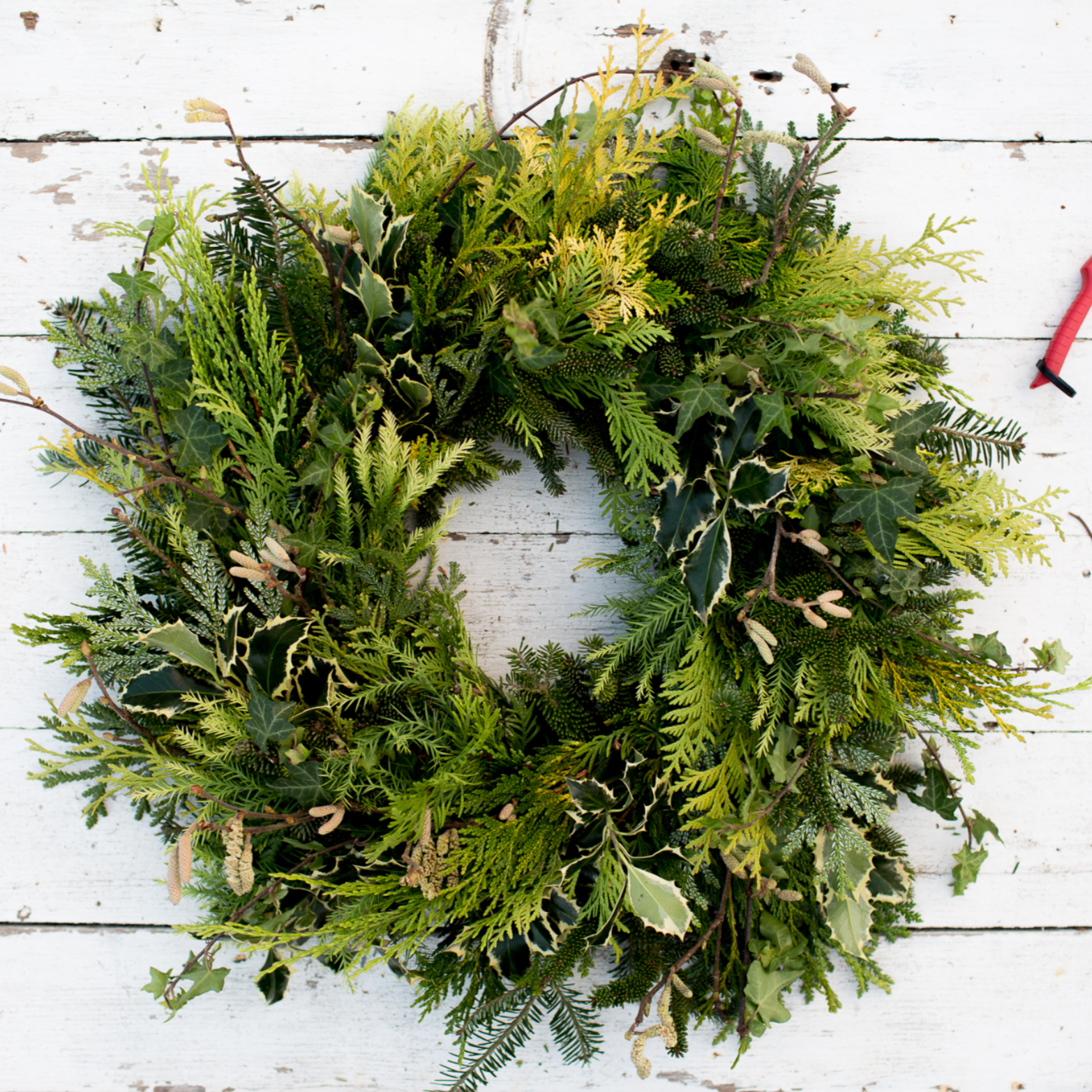 - This entails building a full fresh green wreath with speciality greens and decorating with an assortment of baubles and ribbon.