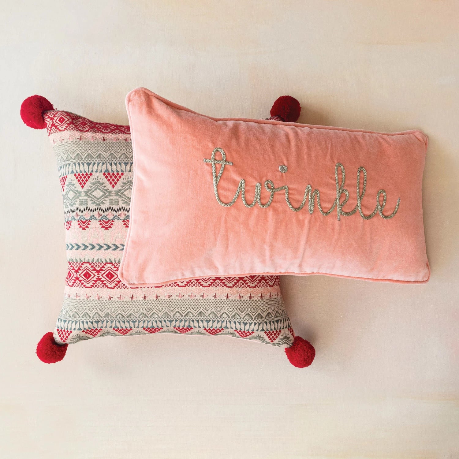 - Woven Acrylic Jacquard Pillow w/ Pattern, Metallic Gold Thread Embroidery