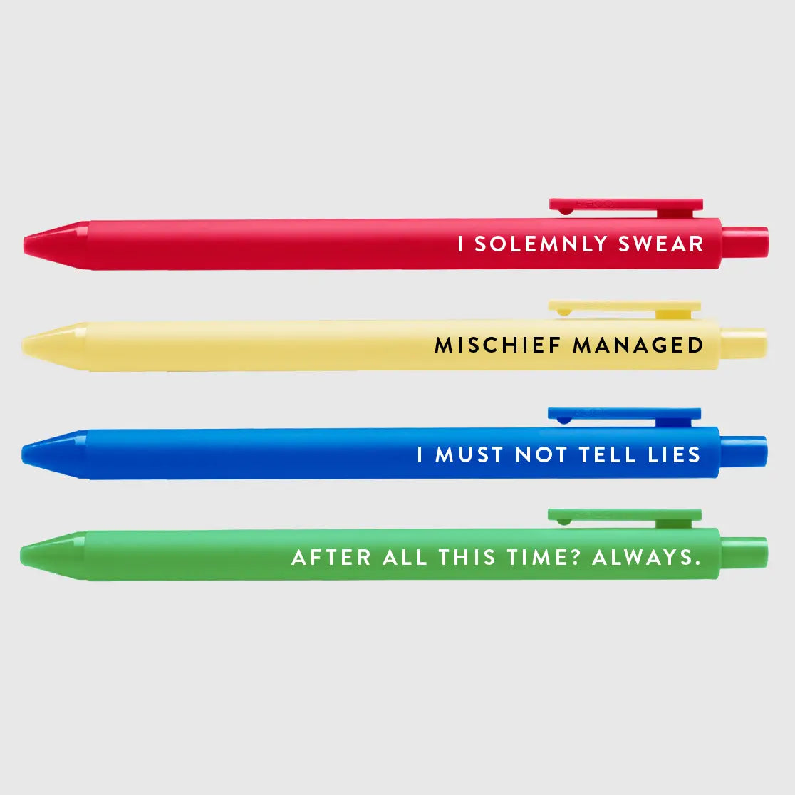 Pens Say: I Solemnly Swear, Mischief Managed, I Must Not Tell Lies, After All This Time? Always.